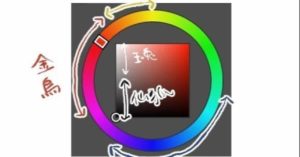 朱色は金烏、朱色よりオレンジの強い色は狗賓