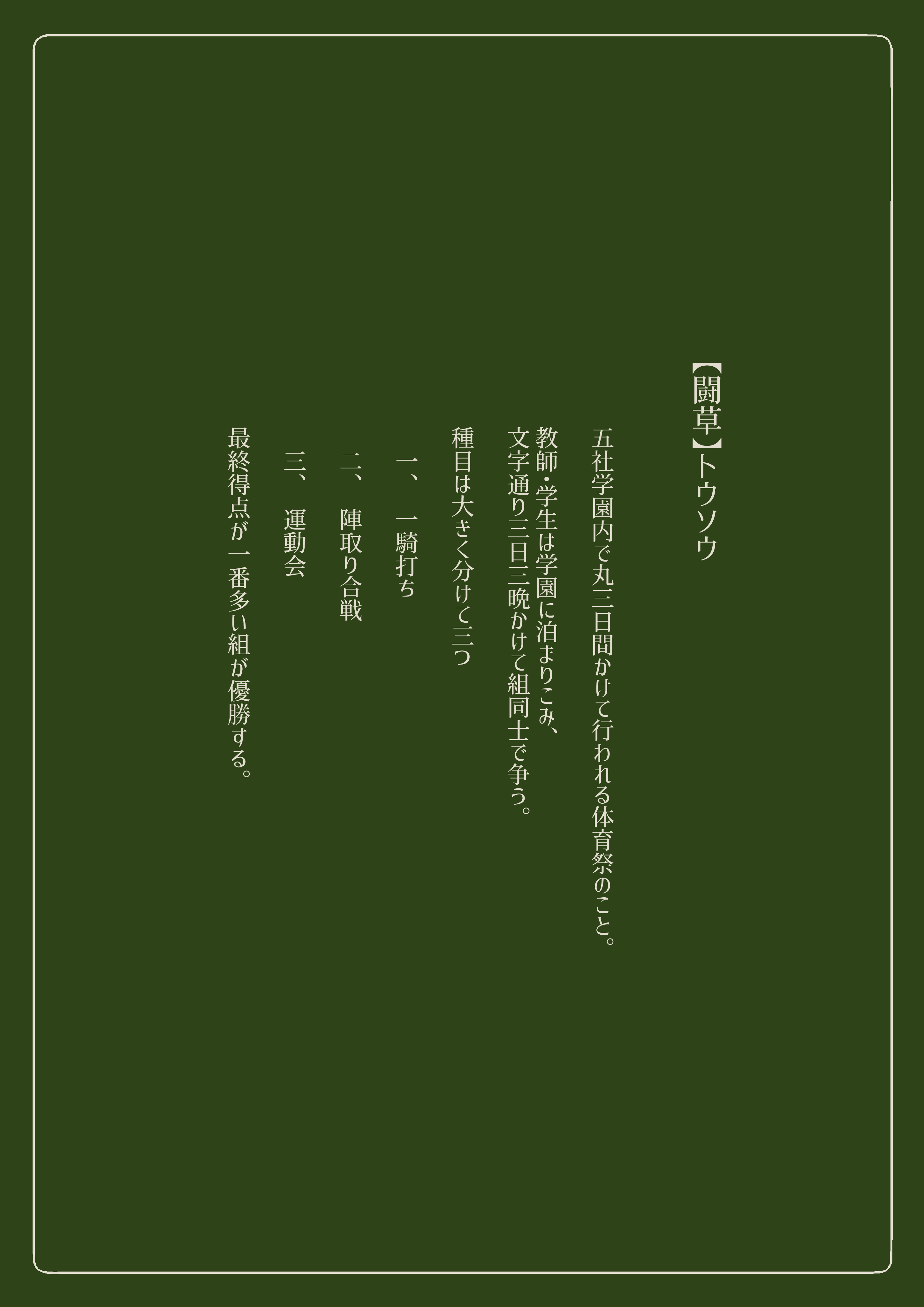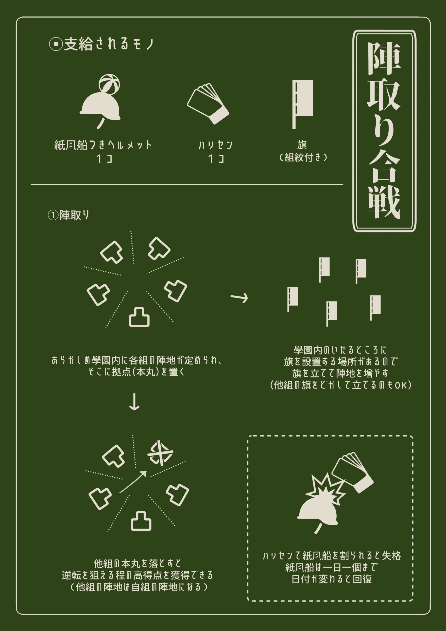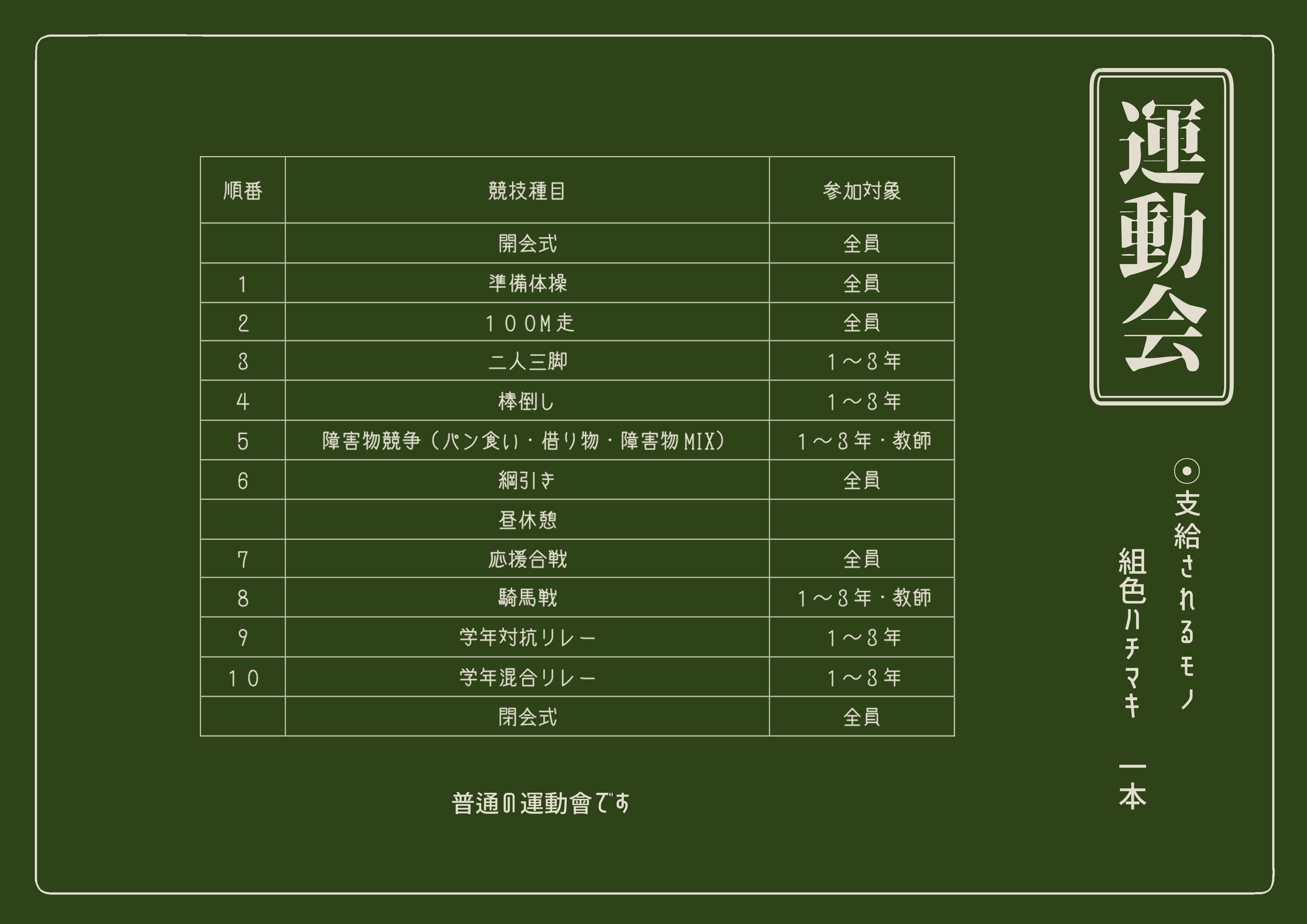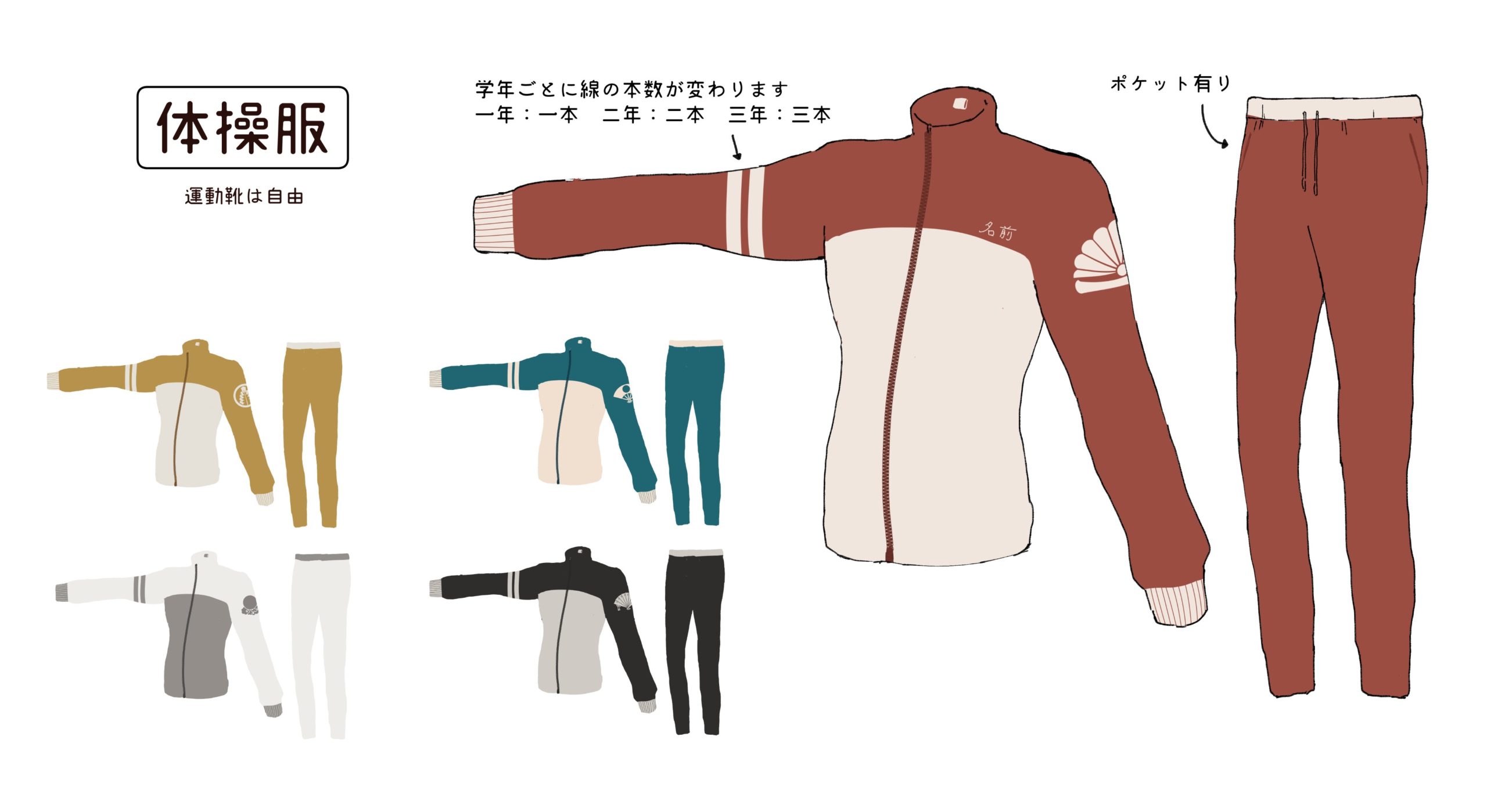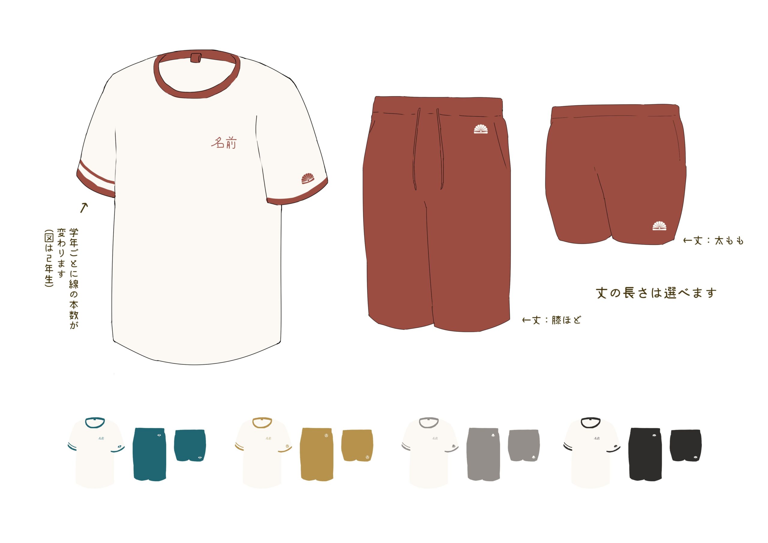 【体操服について】 条件を守っていれば体操服のデザインは自由です ・メインカラーが組色であること (組色の彩度明度は問わない) ・学年がわかること ・(設定上)組紋が使用されていること ・名前が表記されていること 参考画像のデザインの使用は自由