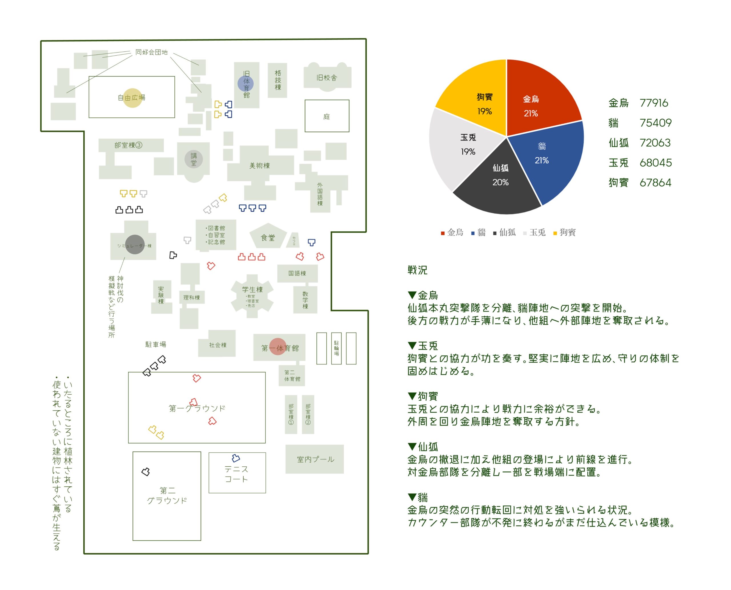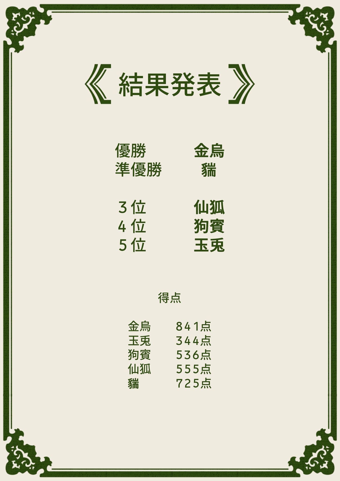第二回目のアンケートです(全三回) 今回は二組投票可能としました 結果も閲覧可能な仕様となっています 画像は現在の戦況です。